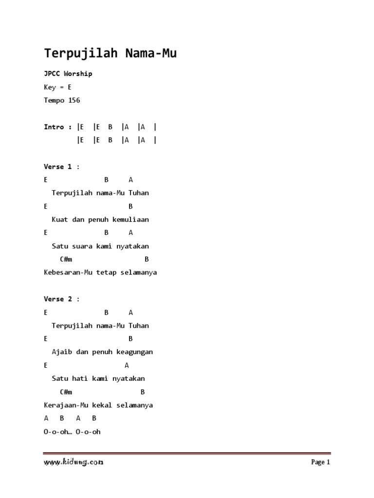 Terpujilah Nama Mu Tuhan One Official Video Album Chords Chordify